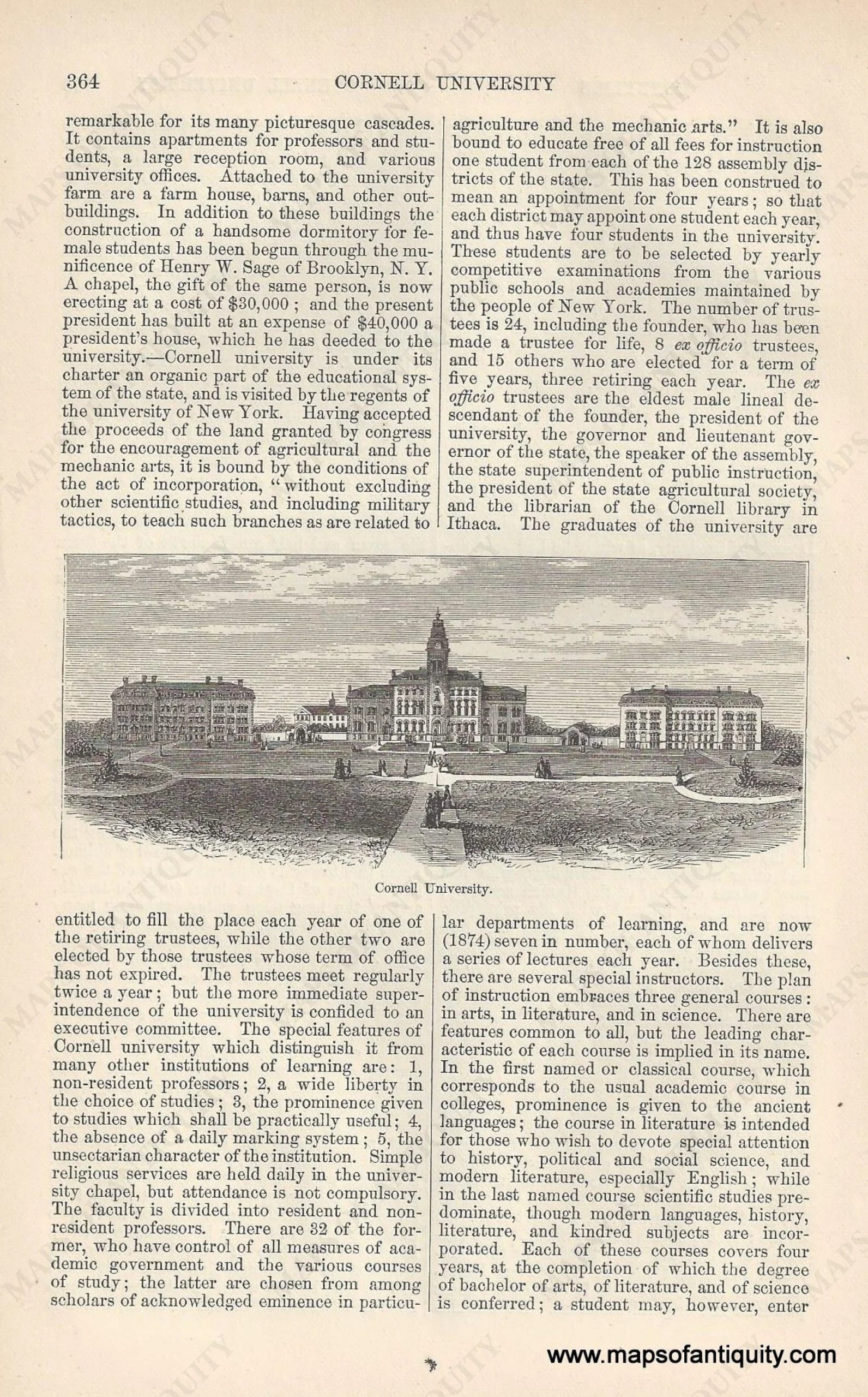 Antique black and white engraving showing Cornell University. Very good condition. Image is approx. 2.25 x 5
