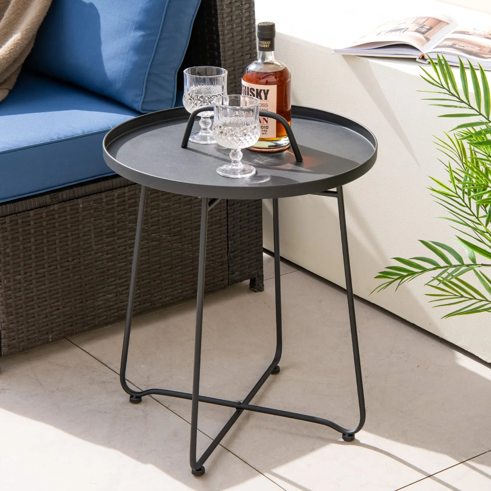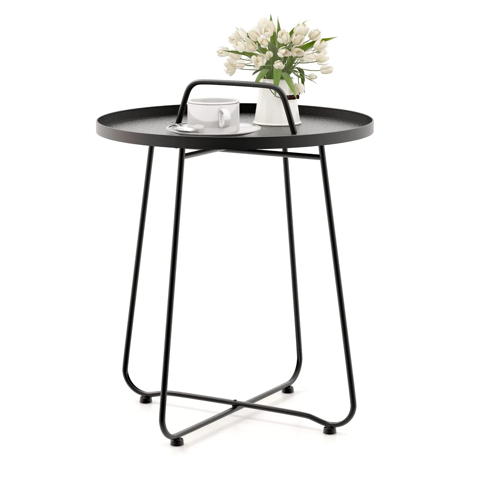 Tangkula Outdoor Side Table with Handle, 18″ Round Small Coffee Accent Table for Indoor & Outdoor