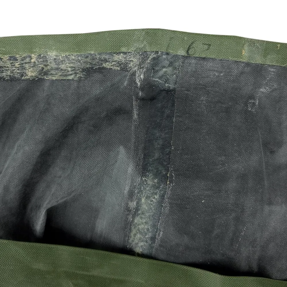 US Army Soldiers would typically put all their spare clothing and anything they need kept dry in one of these bags, then lump it in their ALICE pack so it stays dry no matter what. Having said that – this batch they are knackered! Well used, some even have light shining through the rubber layer and naturally decayed seal tape. Some with a bit of TLC might be able to provide a bit more life but otherwise are best suited to being a dirty washing bag or the likes!