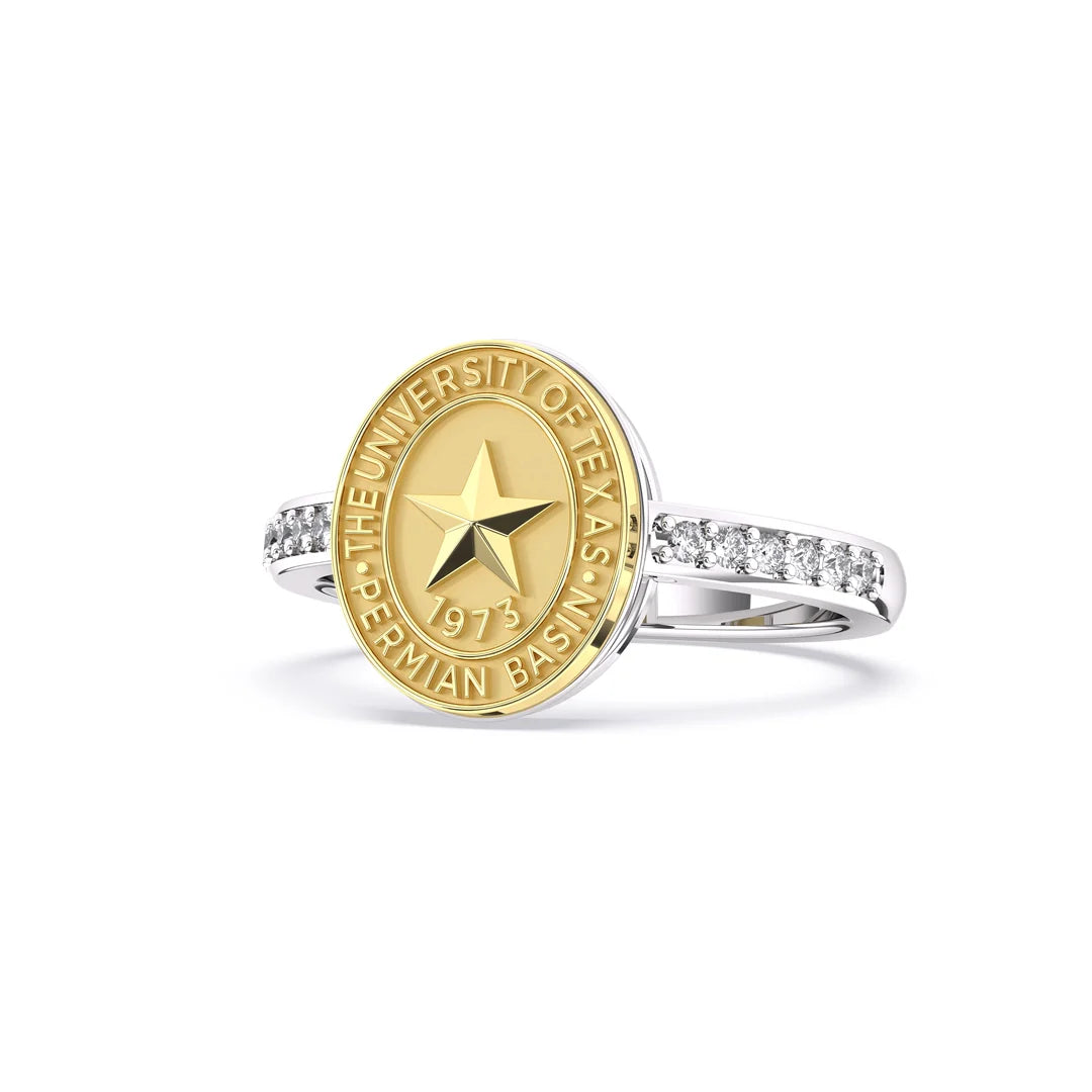 One of the best things about this simple design is that it always stays in style. The 228 Vida ring’s timeless design is a beautiful way to commemorate your University of Texas Permian Basin journey. Crafted from stunning platinum silver, the highlight of this UTPB ring is its simplicity, allowing the University of Texas Permian Basin seal to stand out. This UTPB ring will be your most cherished and versatile accessory!