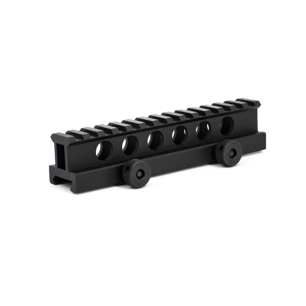 The Valken 1” Riser Mount with 14 ring slots is a rifle accessory that mounts to a flat top picatinny rail. This tactical riser mount is used to raise an optic’s line of sight by 1”, and locks firmly into place with two thumb screws. It installs in seconds, and is very helpful when using with full-size rifle scopes. We recommend our Valken 1-4×20 Mil-dot Scope for use with this riser when you need those longer ranged shots.